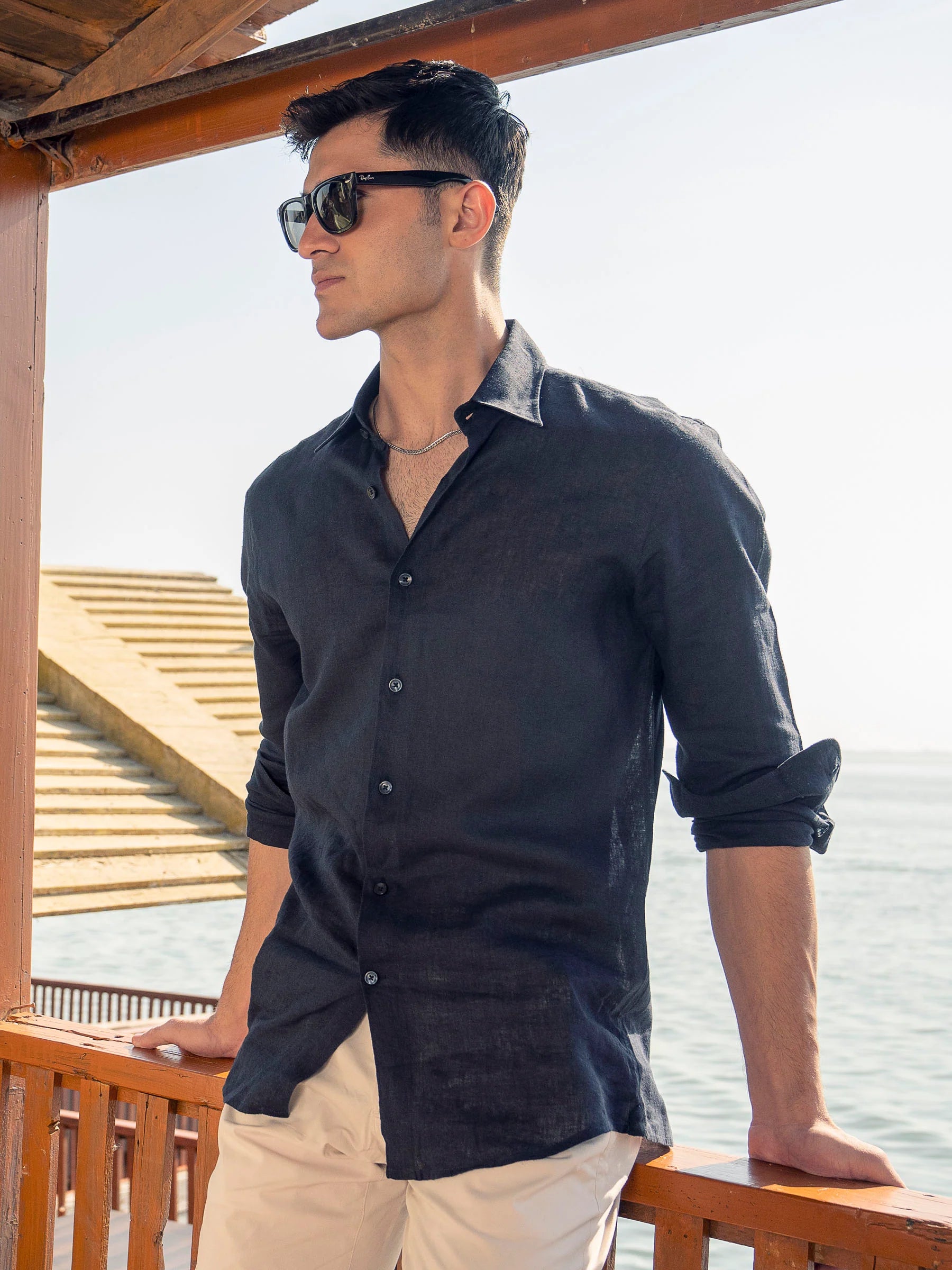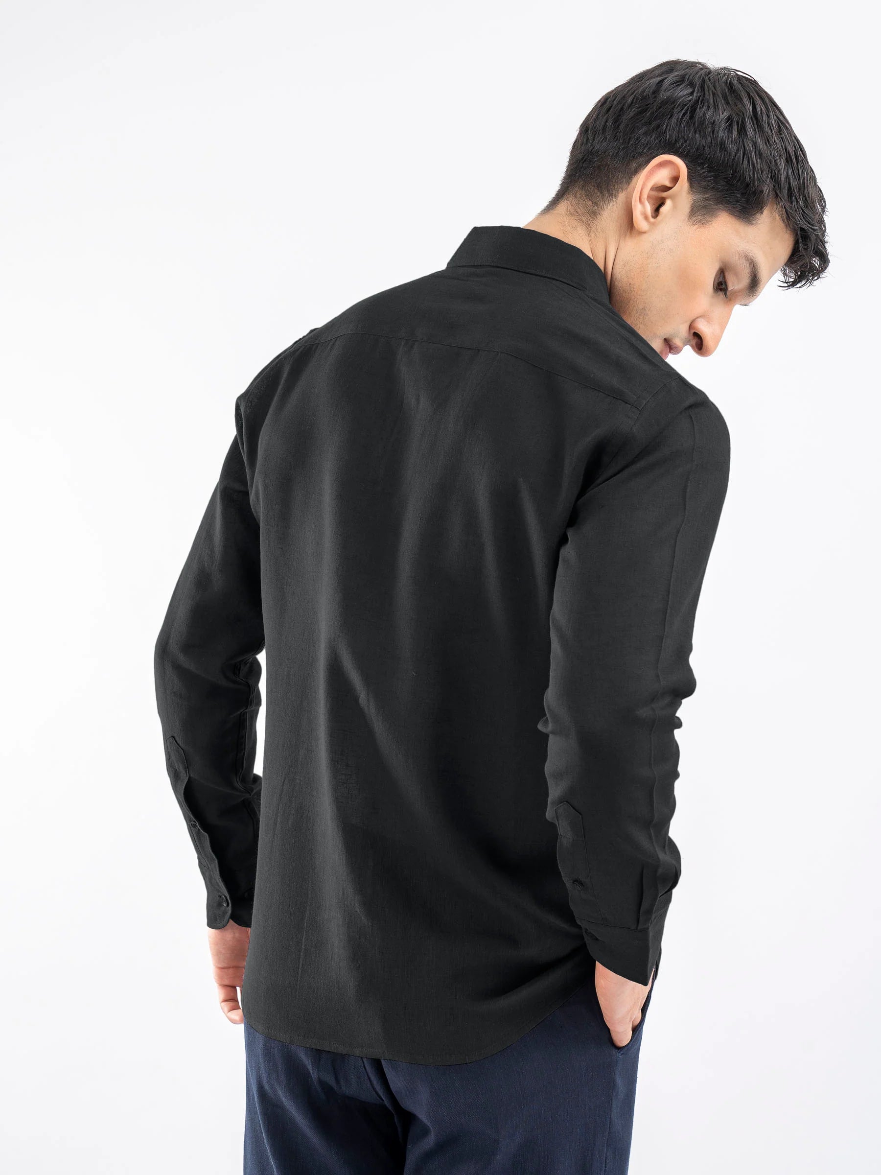 Black Airy Linen Blended Shirt