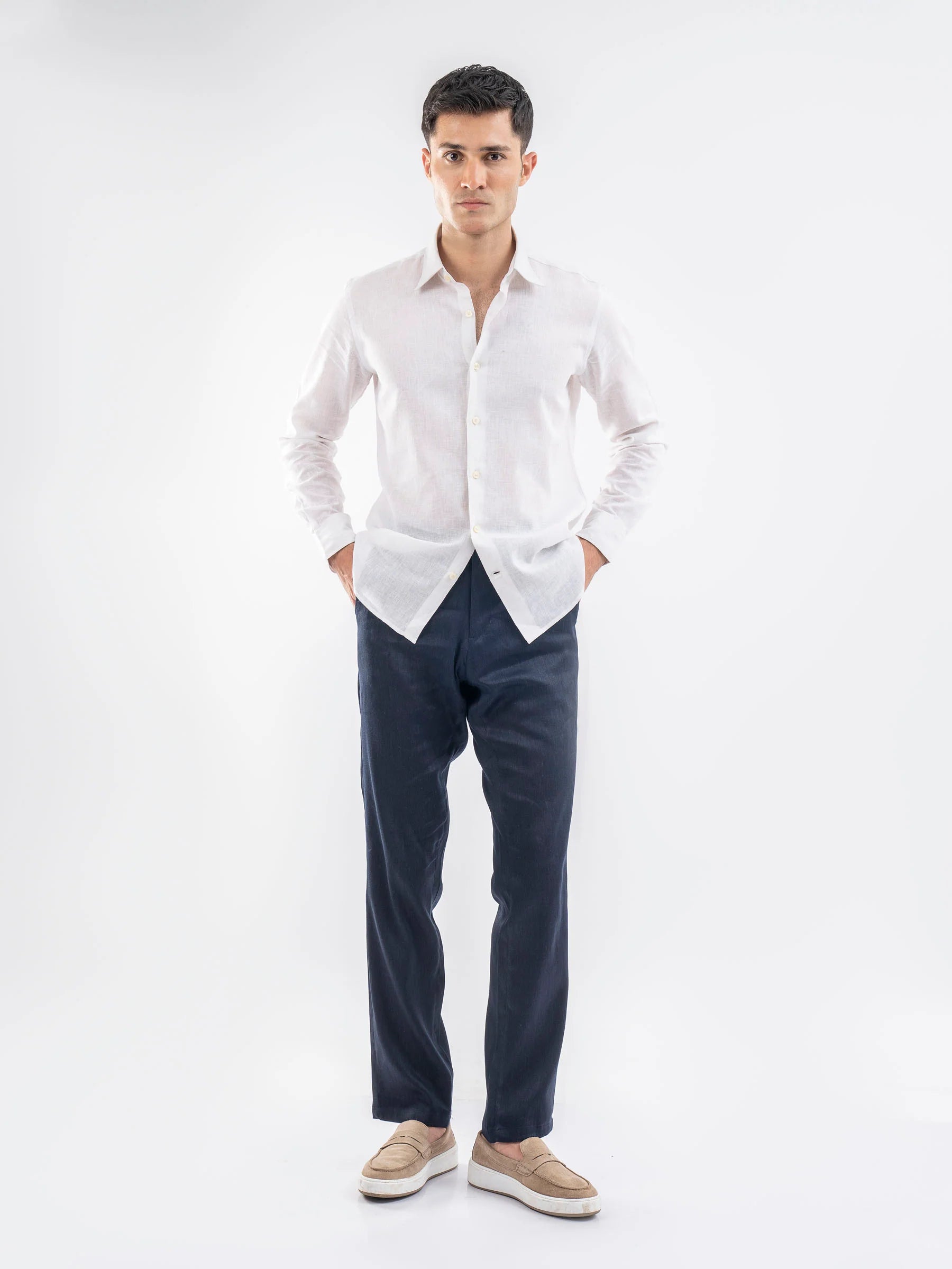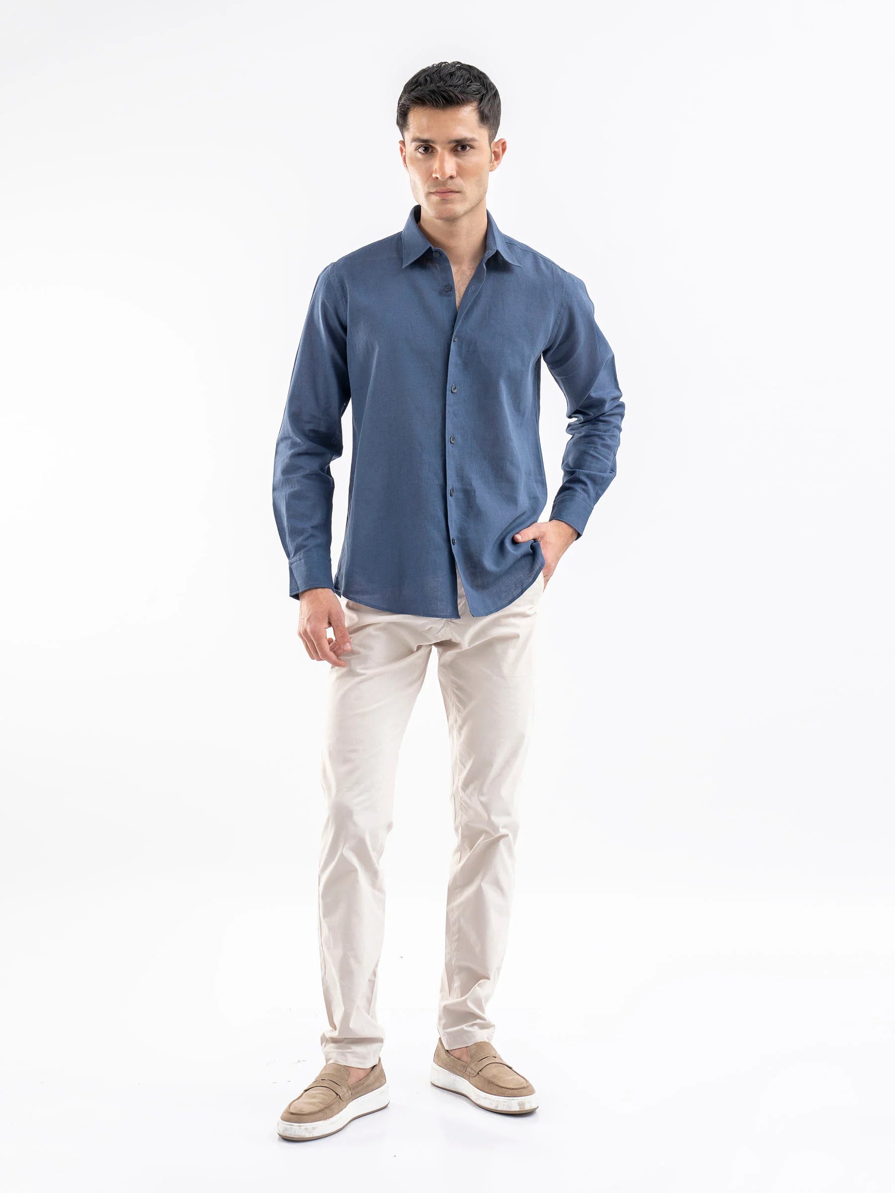 Navy Blue Airy Linen Blended Shirt