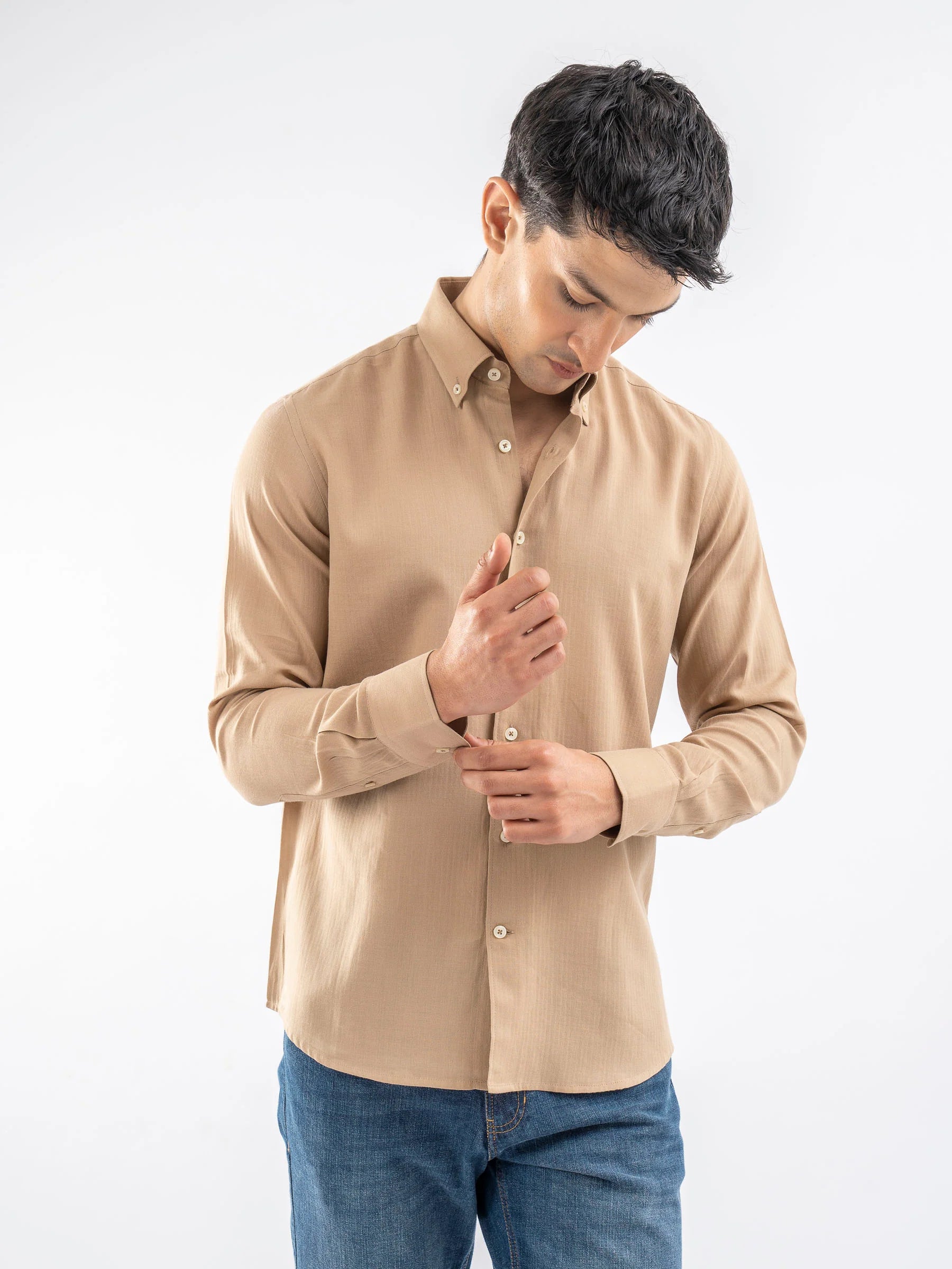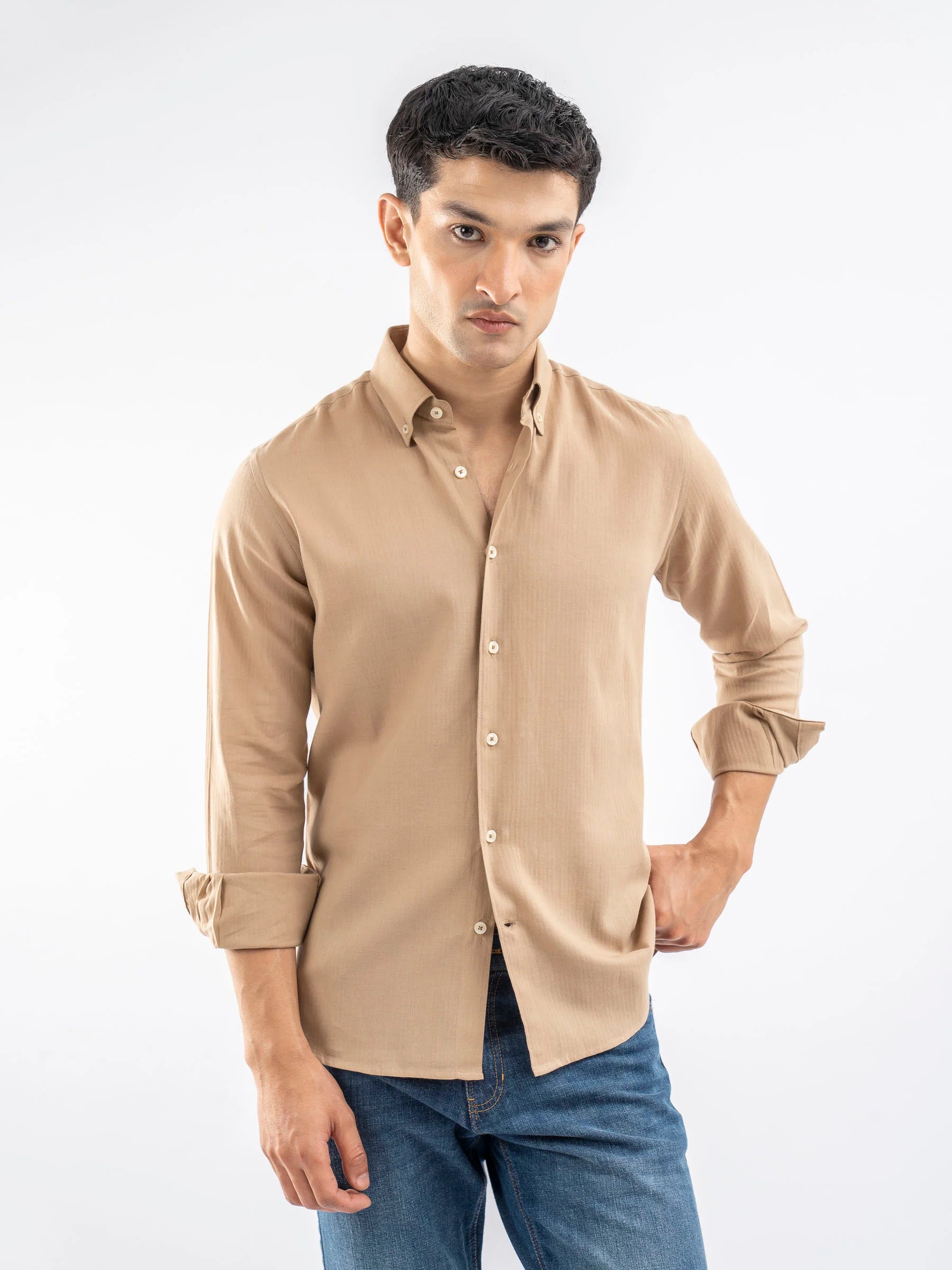 Camel Brown Light Weight Button Down Shirt