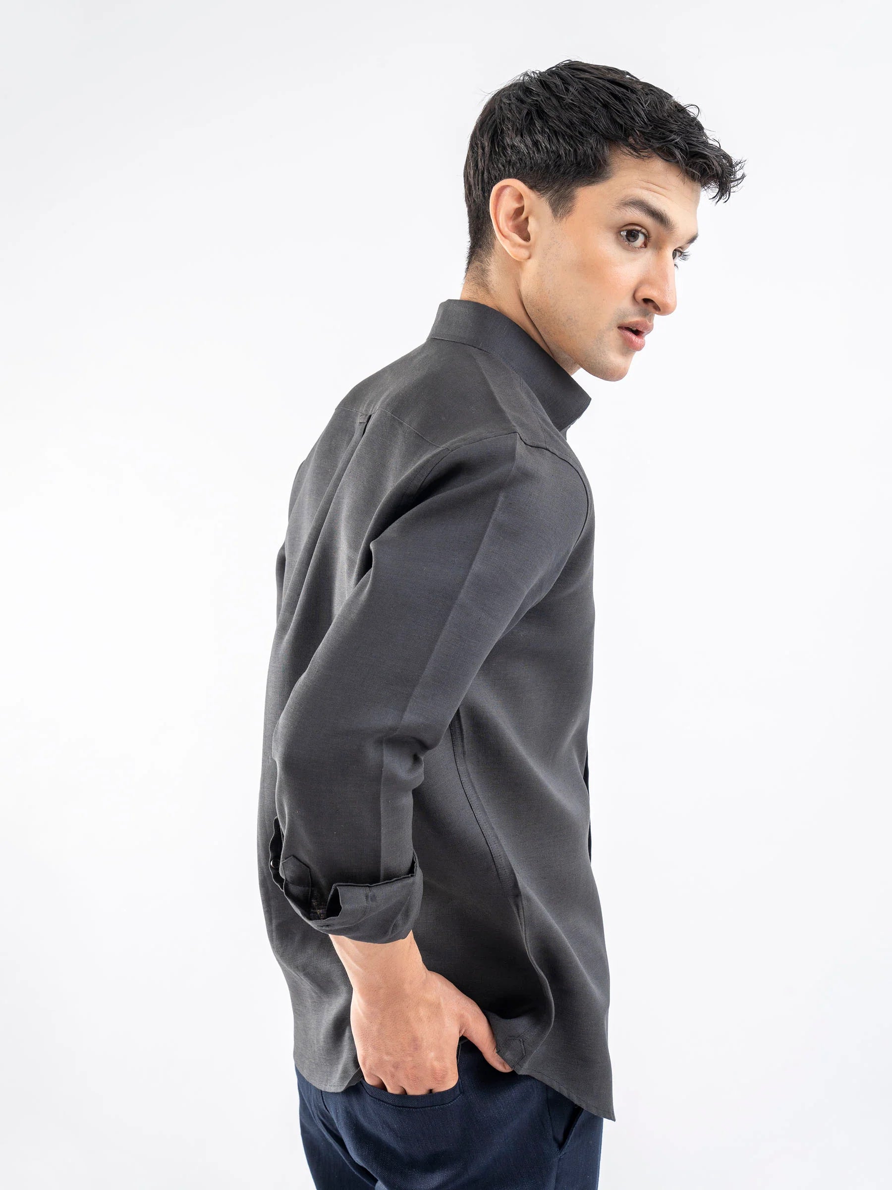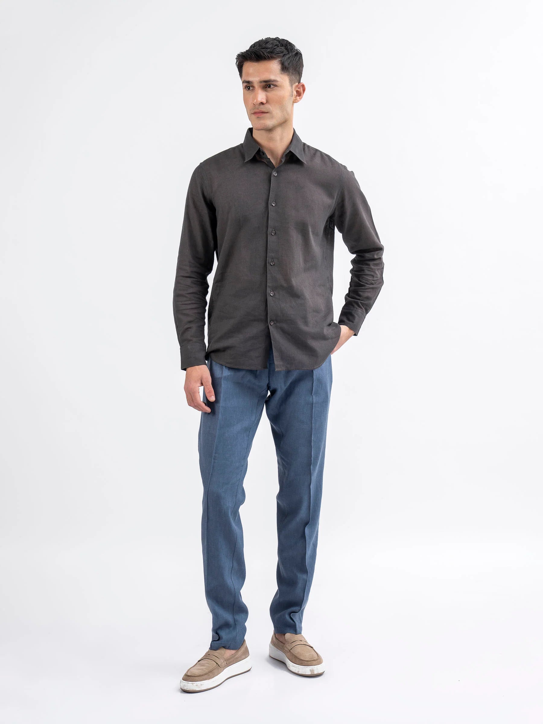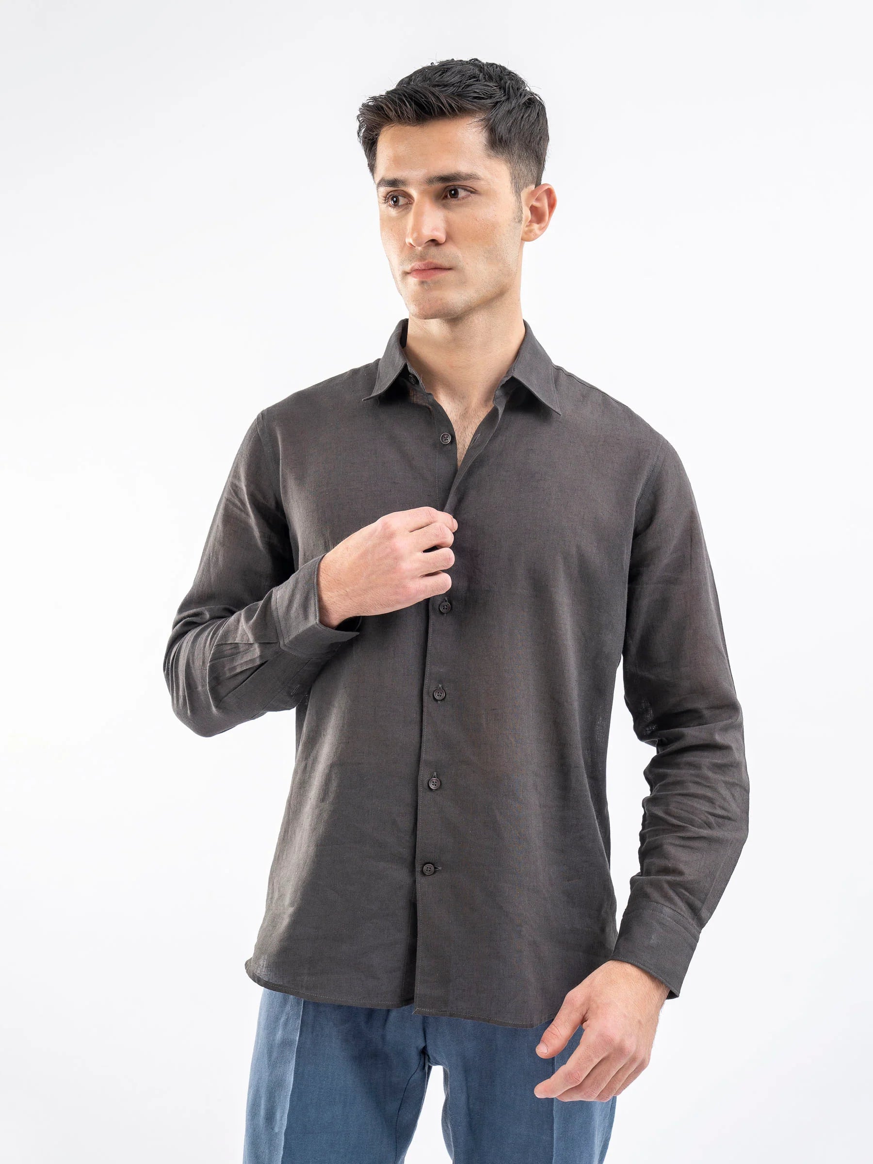 Dark Charcoal 100% Linen Shirt